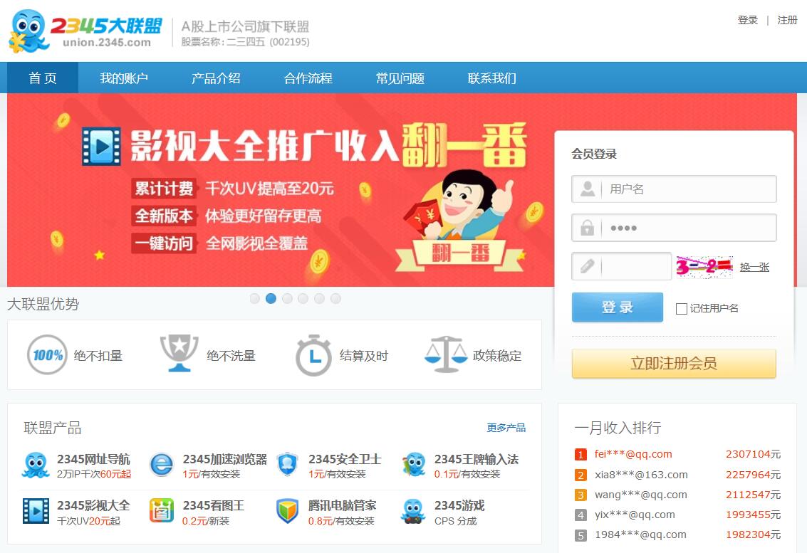 1) 佣金优势:2345大联盟给您的收益回报同行业最高,同样的流量,您加盟2345收入更多更稳定;