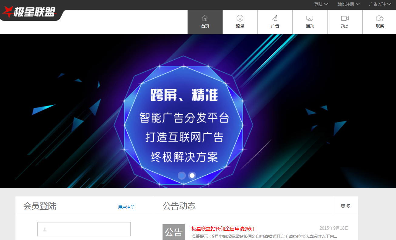 我们极星广告联盟是老联盟 ,收益 信誉 广告质量在行业都在前列 。我们是轮播代码20多个广告轮播充分利用您的ip和pv使您的收益最大化 。而且我们的点击率在所有联盟中是最高的 我们的广告内容丰富 收益好 结算快 扣量几乎没有 而且我们的数据实时的。求长期合作。联盟截图: