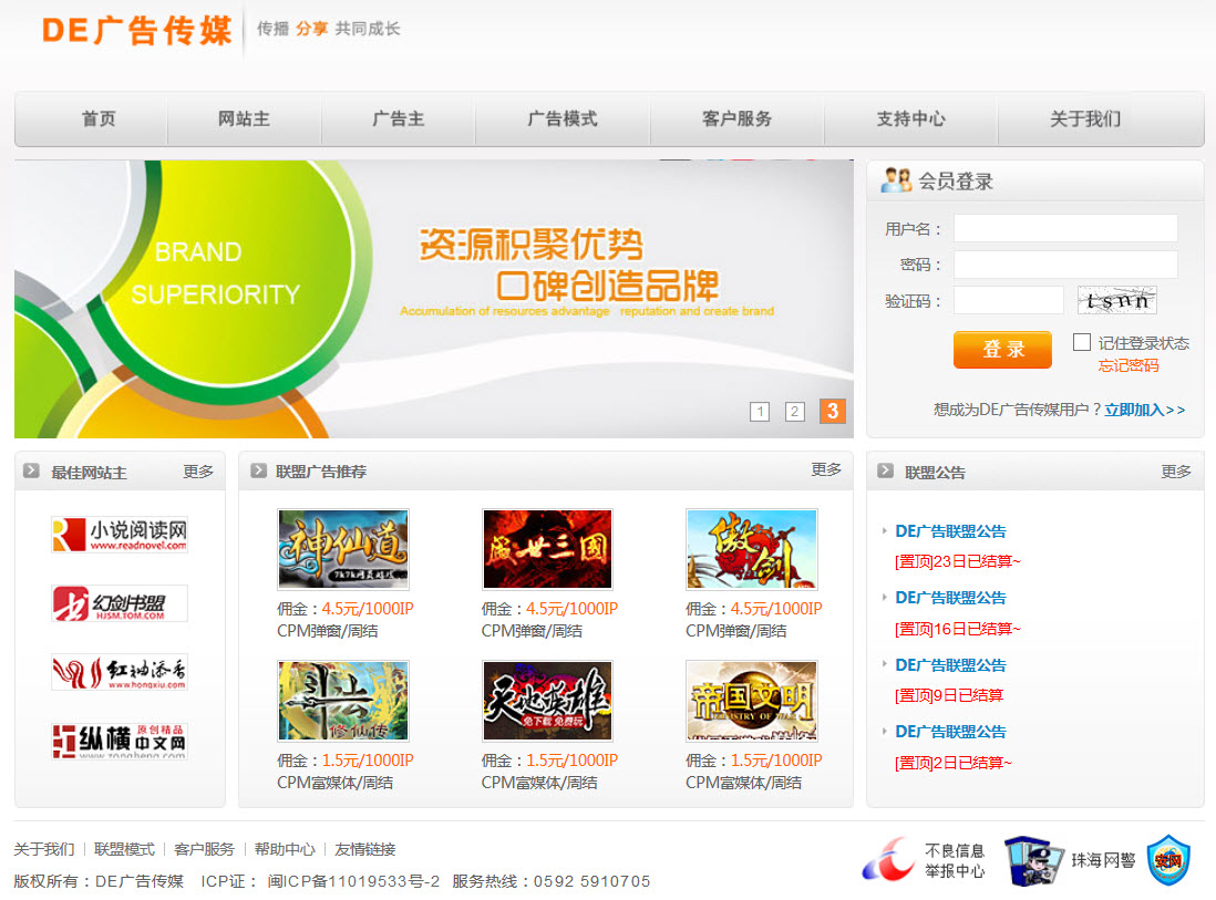 DE广告传媒联盟是一家专注于互联网广告及网络营销领域的互联网营销服务平台,欢迎大家来我们的联盟投放广告。E-mai:2211250771@qq.com