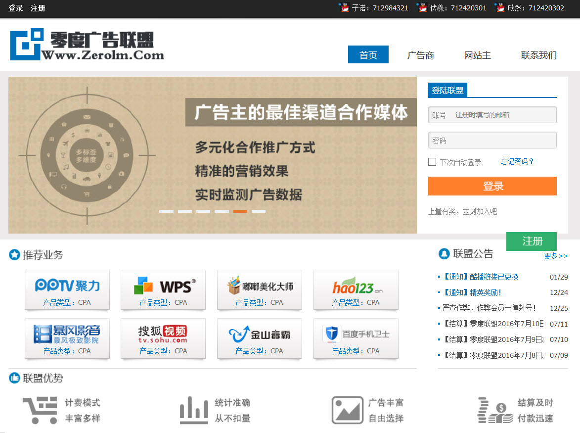 零度广告联盟,10元日付!绝不扣量,所有产品均提供官方后台。www.zerolm.com