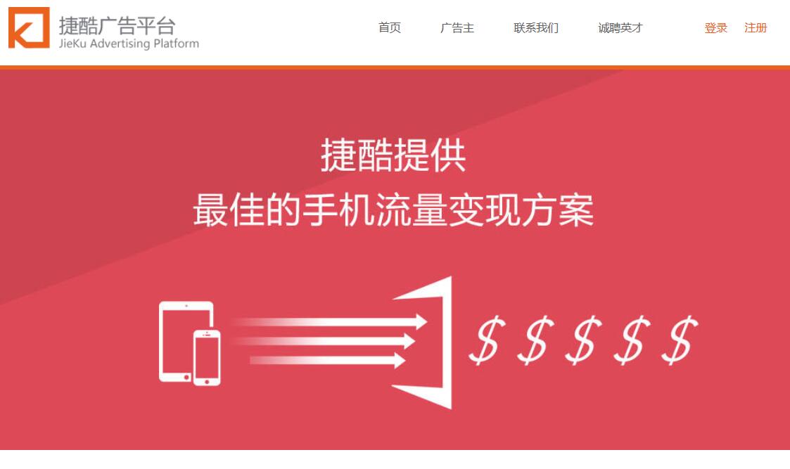 捷酷广告,是一家集互联网广告和线上营销方案为一体的综合性服务提供商,主要为广告主、网站主提供公平、公正的交易平台。捷酷广告联盟是广大网站之间进行合作的一个开放性平台,加入捷酷广告联盟,合作网站就可以通过最为简便的形式把自己的流量转变成现金收入!