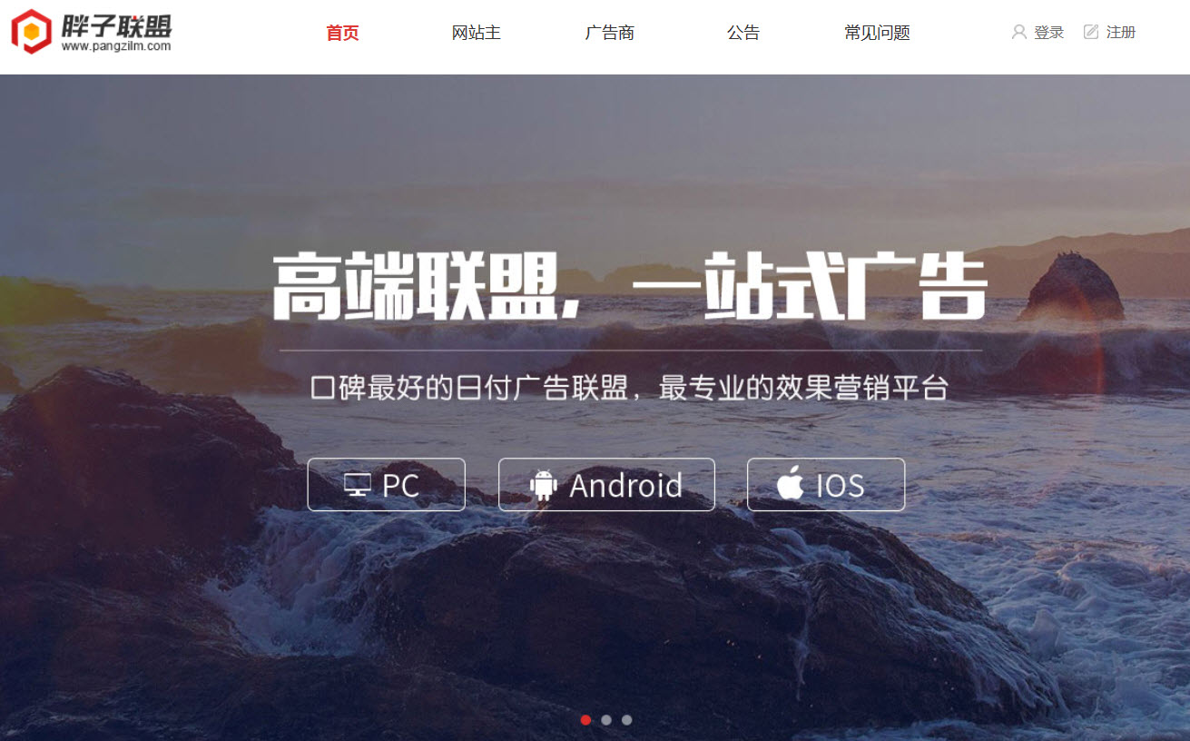 胖子联盟是联盟广告的新起之秀,各种网站资源充足,广告转换率高,结算时间迅速。胖子广告联盟是互联网广告和线上营销方案提供商,是中国领先的按效果计费的线上营销网络,提供专业的移动端广告营销服务,为站长提供各类CPA、CPC、CPS、CPM形式的广告,是站长投放广告的最优选择。