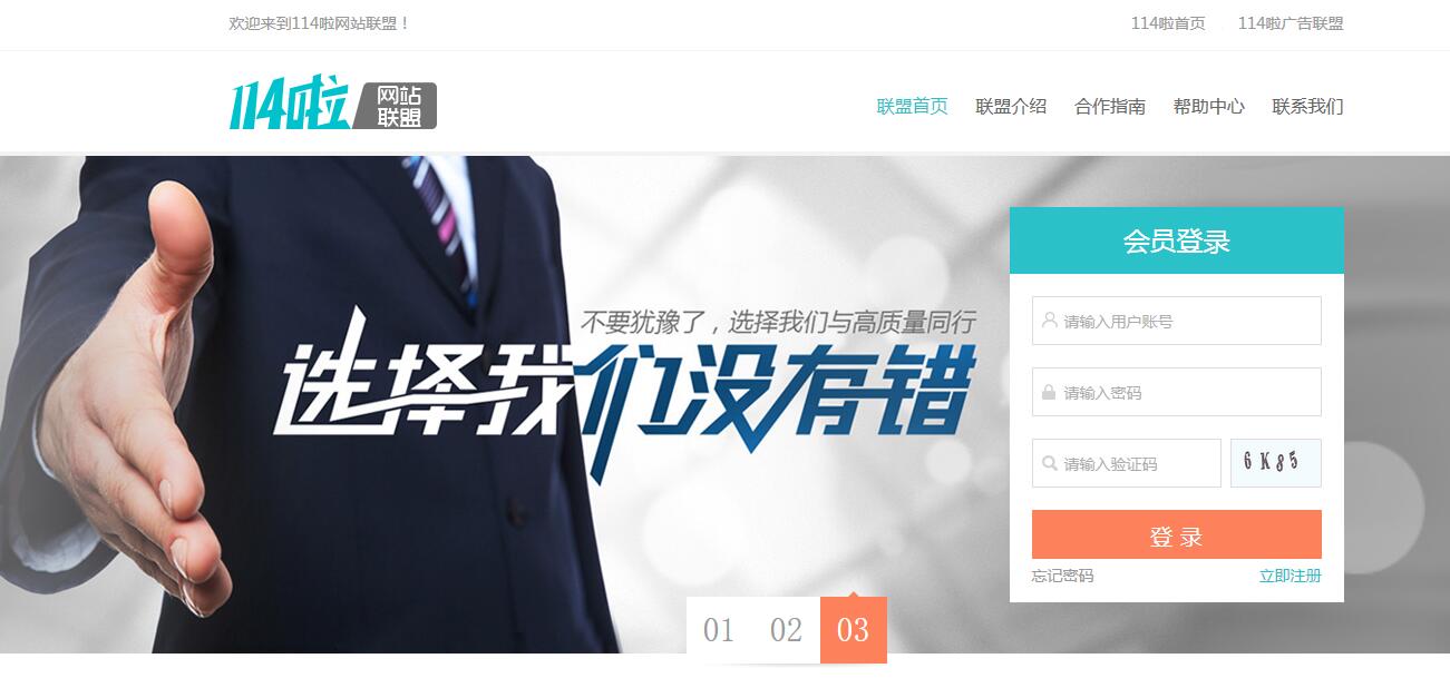 114啦网站联盟将利用自身的品牌优势和资源优势为广大站长和软件主提供一个互惠共赢的平台。希望能与广大网站主、软件主合作推广114啦网址导航,让您把流量转变成稳定可靠的现金收入。联盟截图: