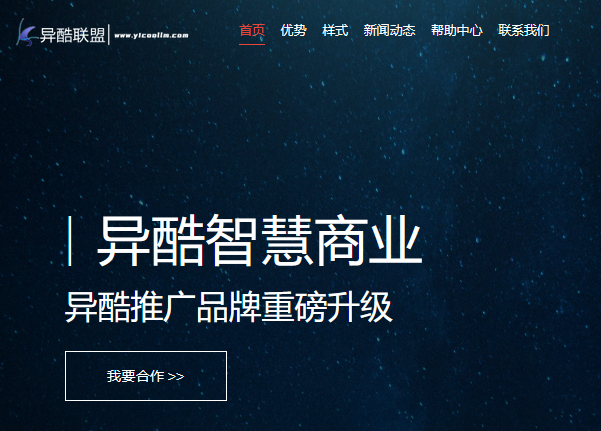 异酷联盟yicoollm.com是一家以cpm,cpv,cpc为主要业务模式的广告联盟, 合作宗旨诚信第一,能带给广告主客户优质流量 实现长期合作,合作共赢! 我们是公司企业,支持对公对私合作!